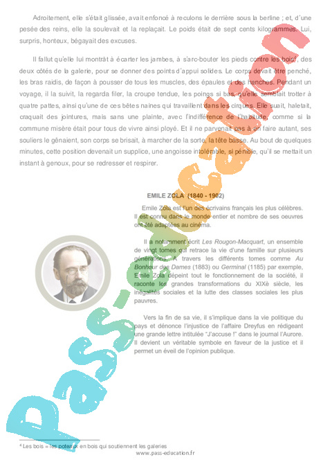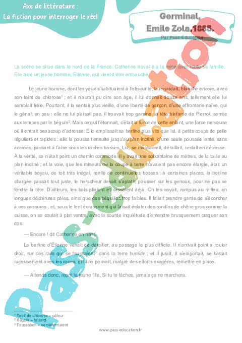 Littérature 4ème Germinal, Emile Zola,1885 pdf