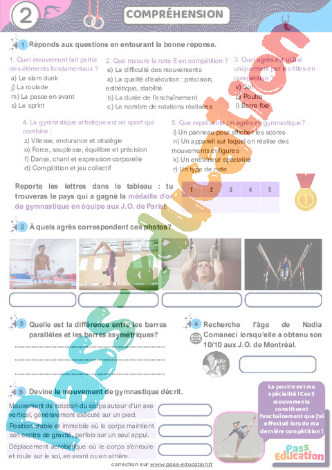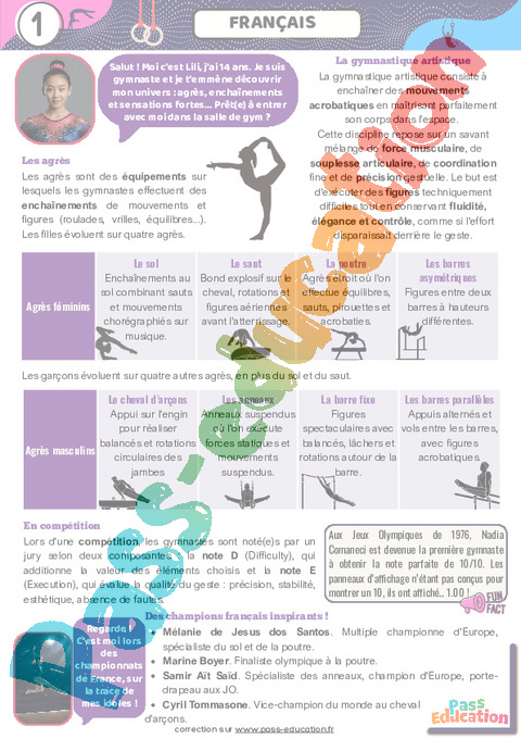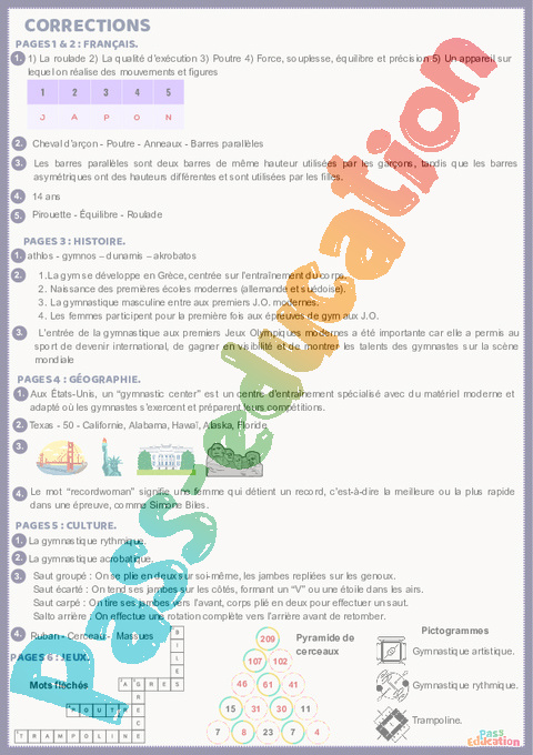 Correction Gymnastique – Fichier d’activités – 5ème – 4ème – 3ème pdf
