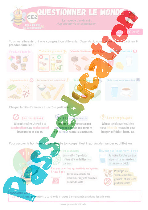 Leçon – Hygiène de vie et alimentation au CE2 – Apis & ses amis : Questionner le monde.