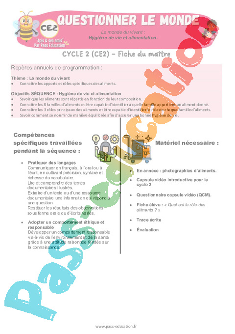 1 Fiche de préparation Hygiène de vie et alimentation – CE2 pdf