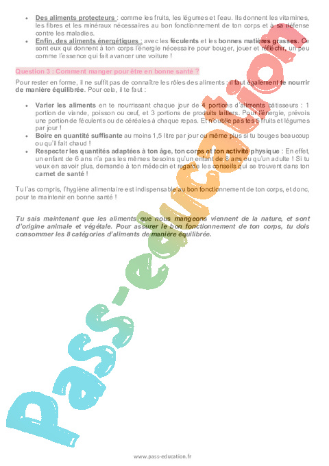 4.1 Correction Fiche Elève Hygiène de vie et alimentation – CE2 pdf