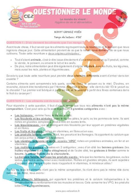 2 Script Hygiène de vie et alimentation – CE2 pdf