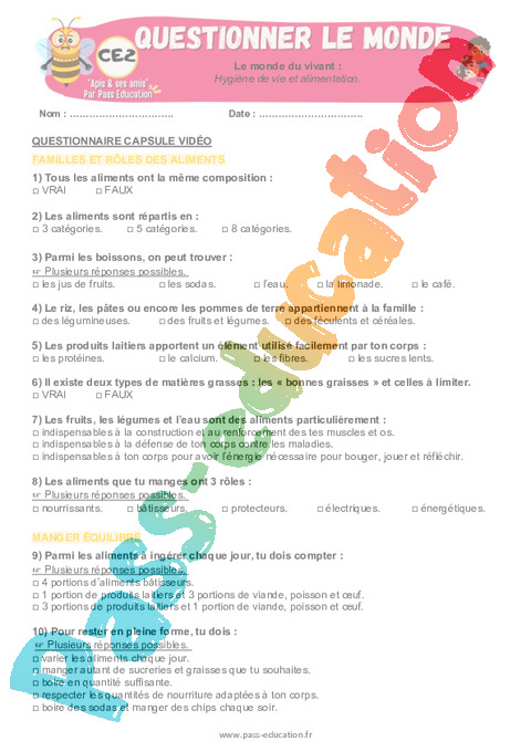 3.1 Correction QCM capsule vidéo Hygiène de vie et alimentation – CE2 pdf