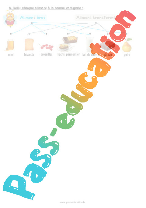 b. Relie chaque aliment à la bonne catégorie :