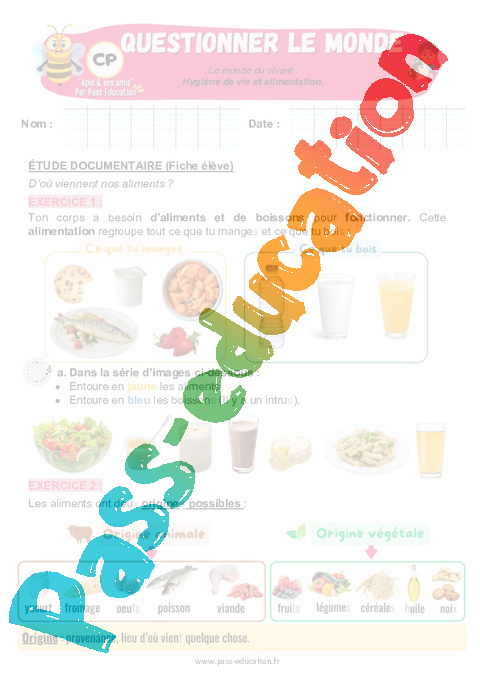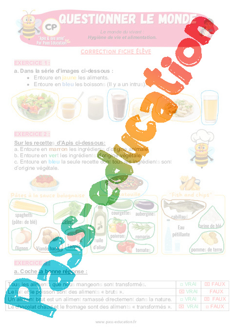 Exercices – Hygiène de vie et alimentation au CP – Apis & ses amis : Questionner le monde.
