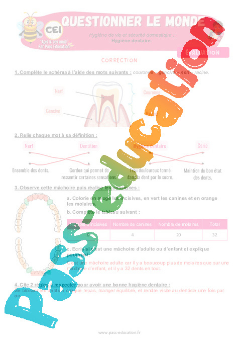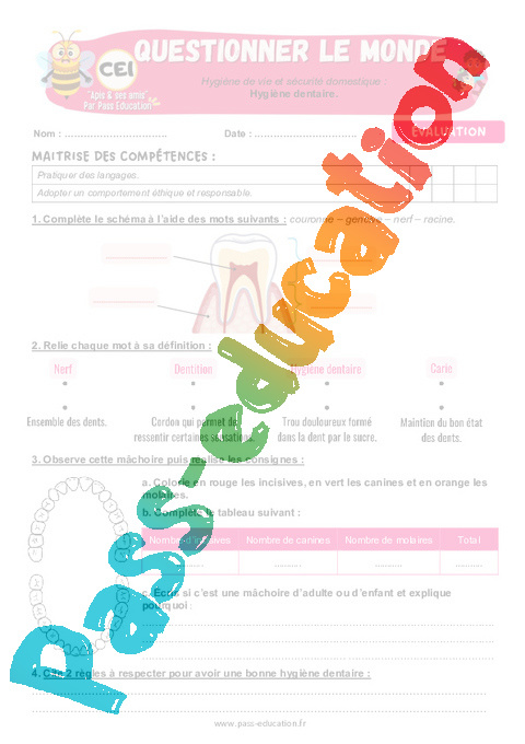 6 Evaluation Hygiène dentaire – CE1 pdf