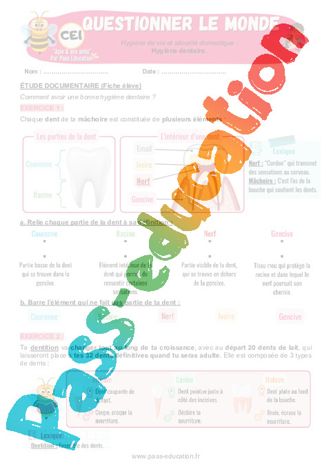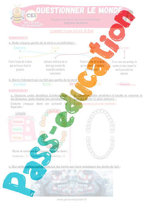 Exercices – Hygiène dentaire – CE1 – Séquence + vidéo – Apis & ses amis.