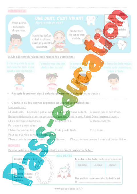 4 Fiche Elève Hygiène dentaire – CE1 pdf