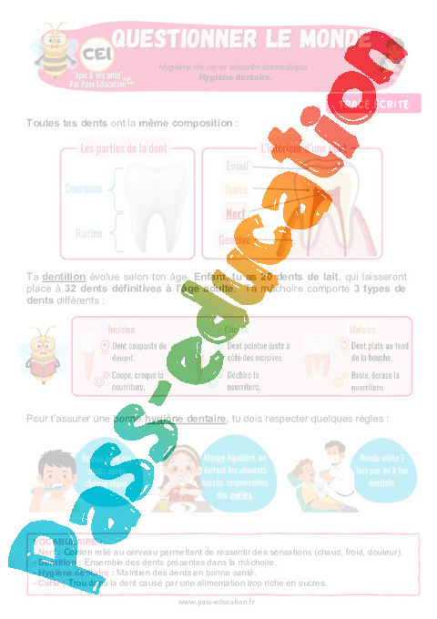 Leçon – Hygiène dentaire – CE1 – Séquence + vidéo – Apis & ses amis.