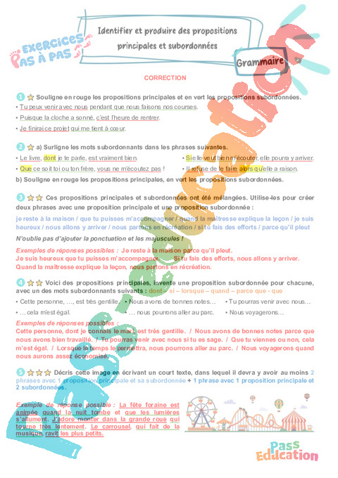 Identifier et produire des propositions principales et subordonnées – CM2 – Exercices Pas à Pas pdf