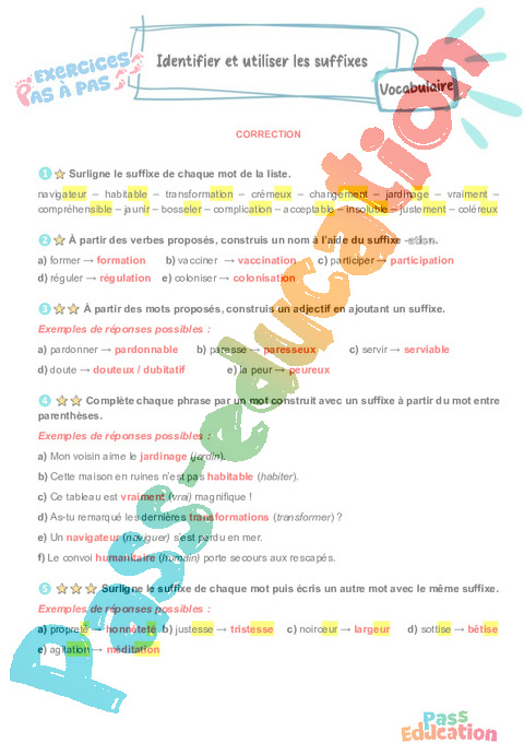 Correction Identifier et utiliser les suffixes – CM2 – Exercices Pas à Pas pdf
