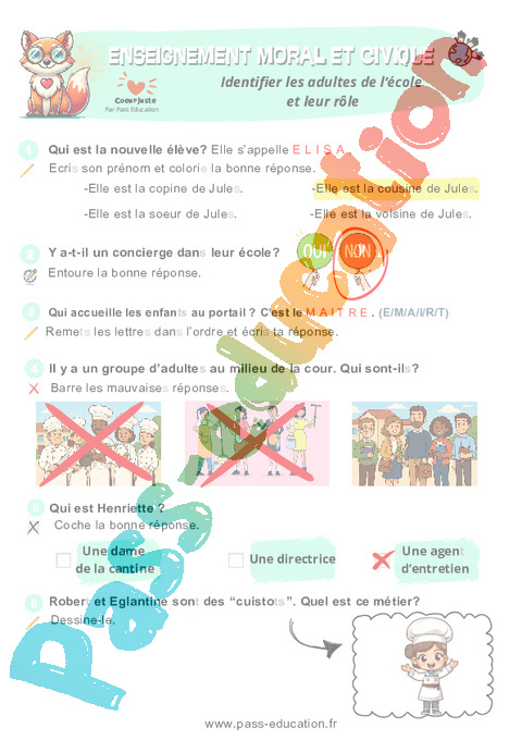 4b. Correction Fiche élève CP Identifier les adultes de l’école et leur rôle pdf