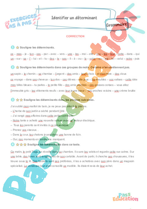 Correction Identifier un déterminant – CE2 – Exercices Pas à Pas rtf