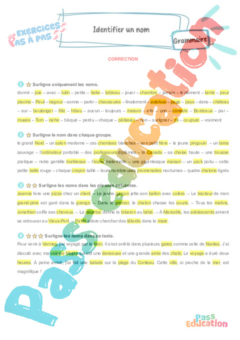 Correction Identifier un nom – CE2 – Exercices Pas à Pas rtf