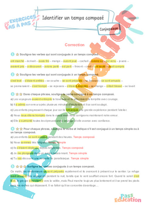 Correction Identifier un temps composé – CM2 – Exercices Pas à Pas pdf