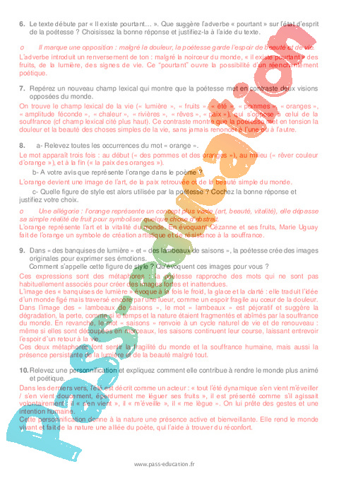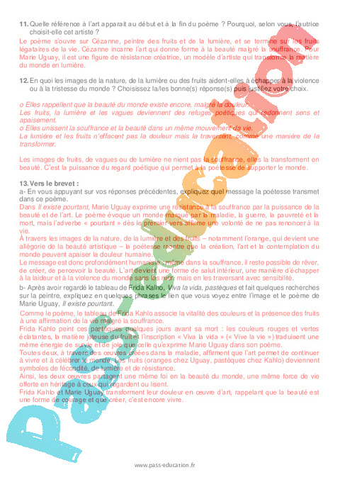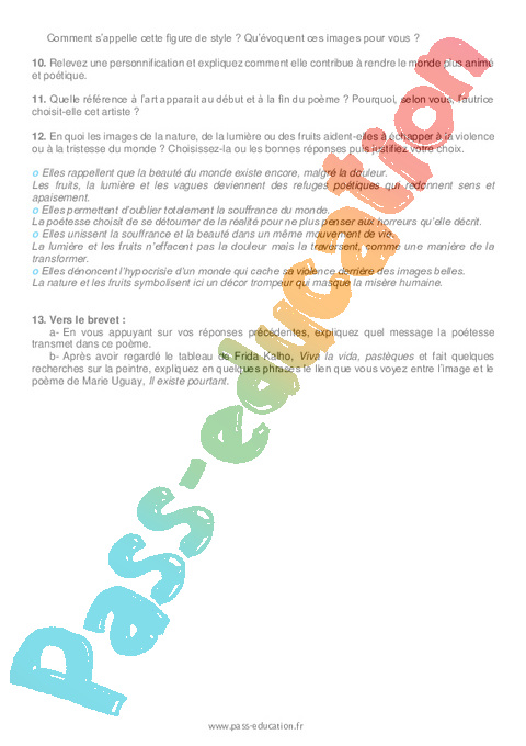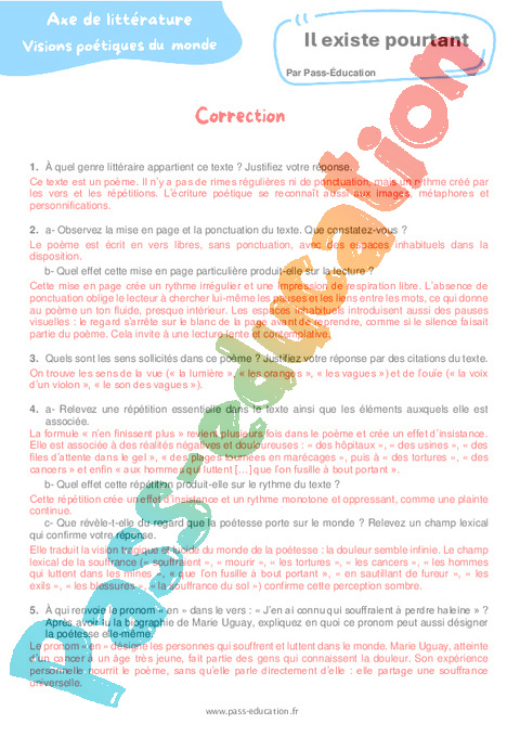 Correction 3ème Questionnaire Il existe pourtant (Marie Uguay) pdf
