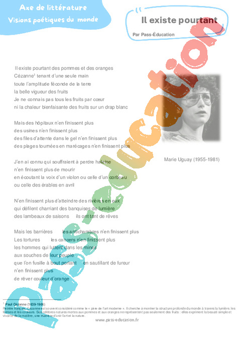 Littérature 3ème Il existe pourtant (Marie Uguay) pdf