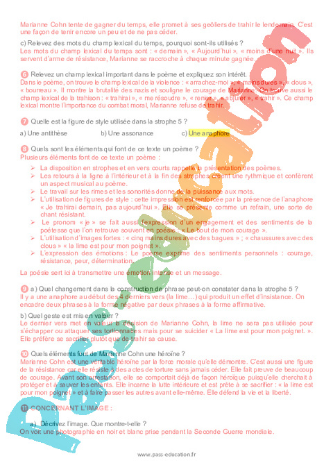 ❶ Qui est Marianne Cohn ? Dans quelle situation se trouve-t-elle lorsqu’elle écrit ce poème ?
