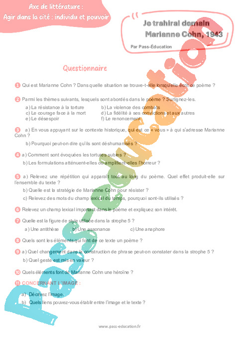Questionnaire Je trahirai demain (Marianne Cohn) – 3ème rtf
