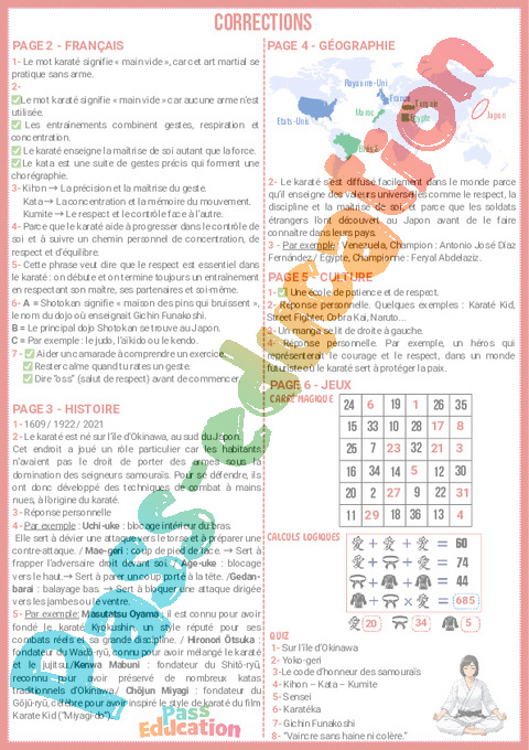 Correction Karaté – Cahier de vacances – 5ème – 4ème – 3ème pdf