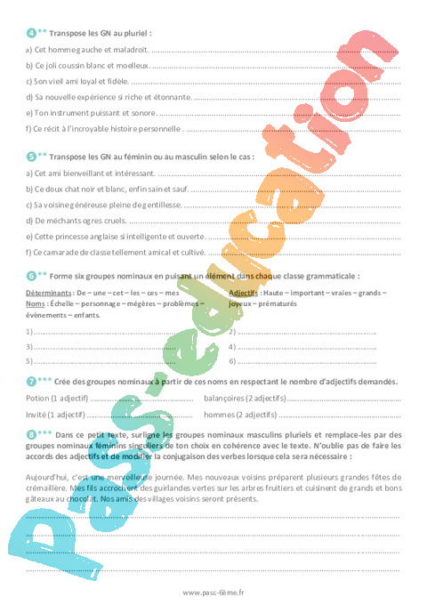Exercices 6ème L’accord dans le groupe nominal pdf
