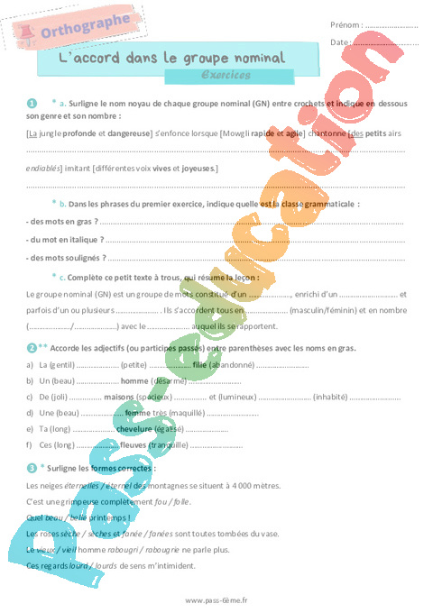 Exercices 6ème L’accord dans le groupe nominal rtf