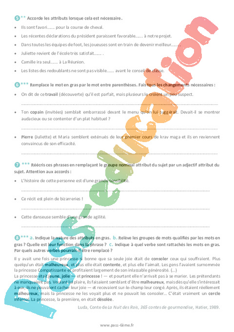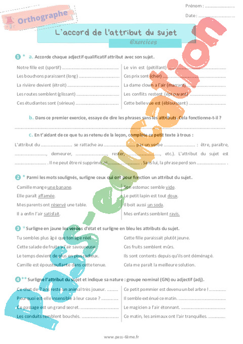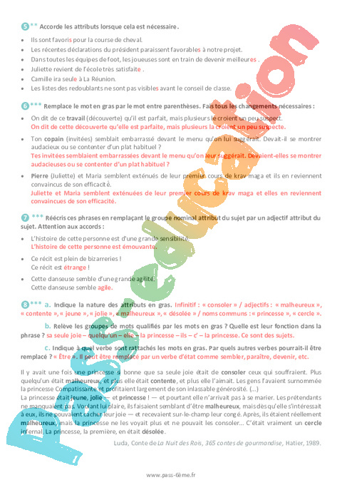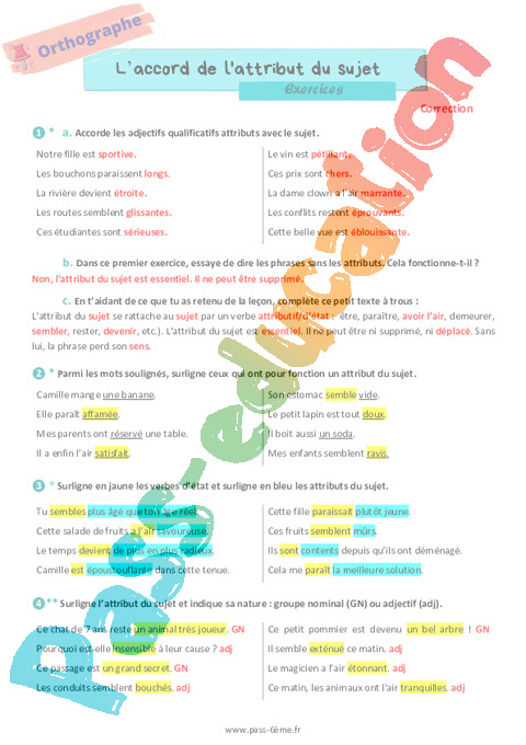 Correction Exercices L’accord de l’attribut du sujet 6ème pdf