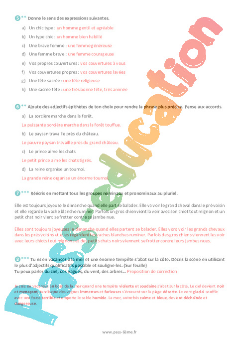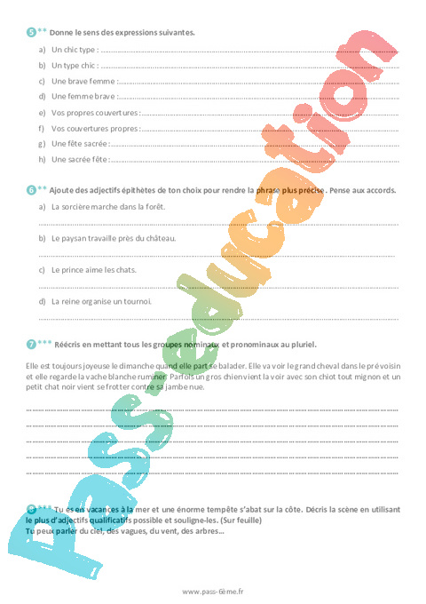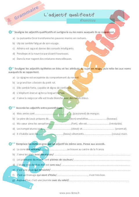 Exercices L’adjectif qualificatif 6ème pdf