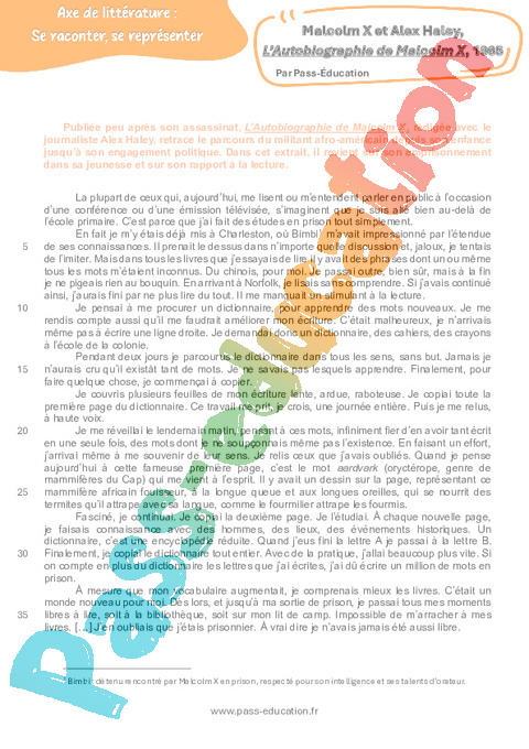Littérature L’Autobiographie de Malcolm X (Malcolm X et Alex Haley) – 3ème rtf