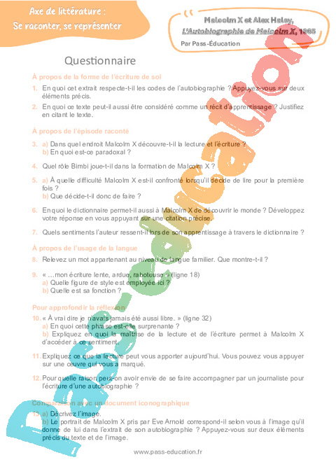 Questionnaire L’Autobiographie de Malcolm X (Malcolm X et Alex Haley) – 3ème pdf