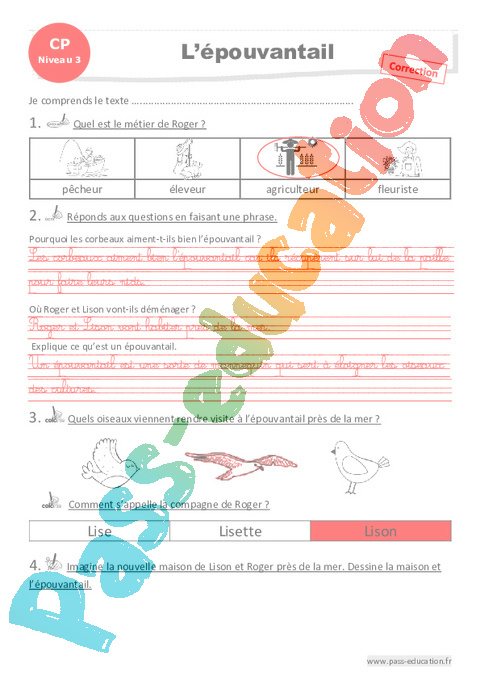 Correction Questionnaire L’épouvantail – CP Luminéo – Niveau 3 pdf