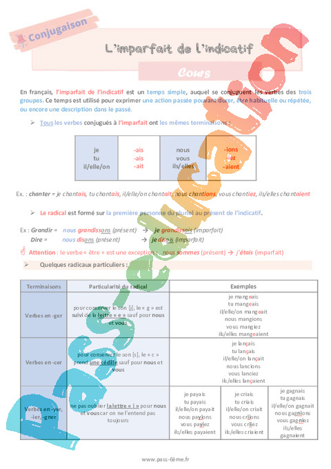 Cours de 6ème sur l’imparfait de l’indicatif.
