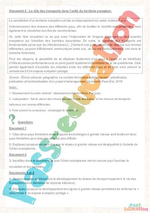 4- Montrez quelles améliorations le développement du réseau de transport apporte à la vie des Européens (deux éléments de réponse attendus).