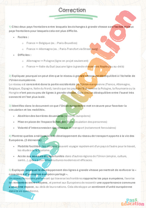 5) Expliquez pourquoi le développement des lignes à grande vitesse permettrait de renforcer la « conscience d’un espace européen partagé ».