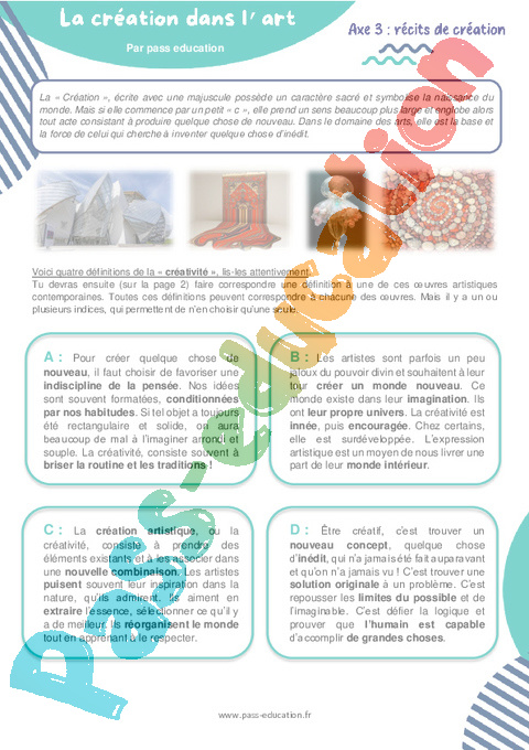 Atelier de lecture La création dans l’art – 6ème pdf