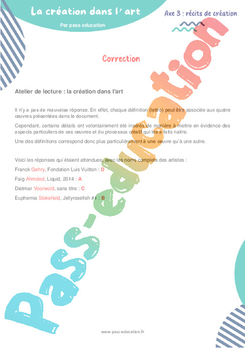 Correction Atelier de lecture La création dans l’art – 6ème pdf