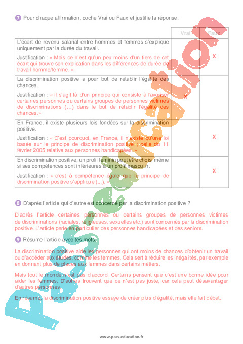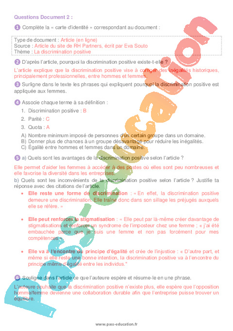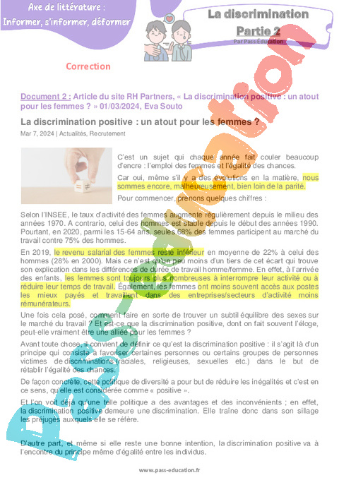 Correction Littérature Partie 2 La discrimination – 4ème pdf