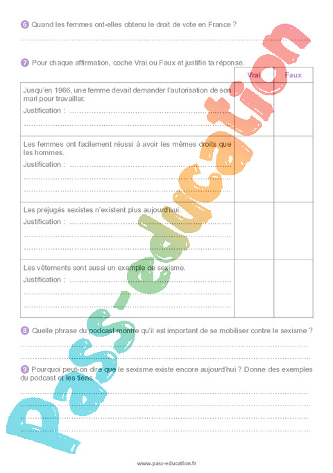 ❾ Pourquoi peut-on dire que le sexisme existe encore aujourd’hui ? Donne des exemples du podcast et les tiens.
