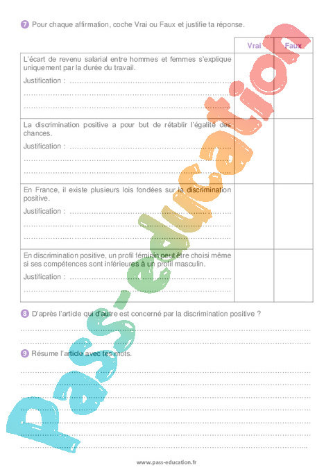 ❸ Que signifie « discriminante » dans l’expression « attitude discriminante fondée sur le sexe » ? En t’aidant du document, résume-le avec tes mots.