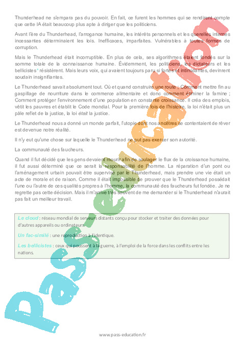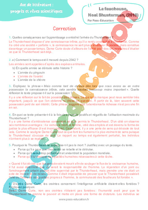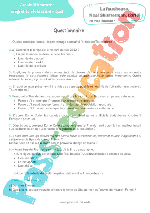 Correction Questionnaire La Faucheuse, Neal Shusterman – 3ème pdf