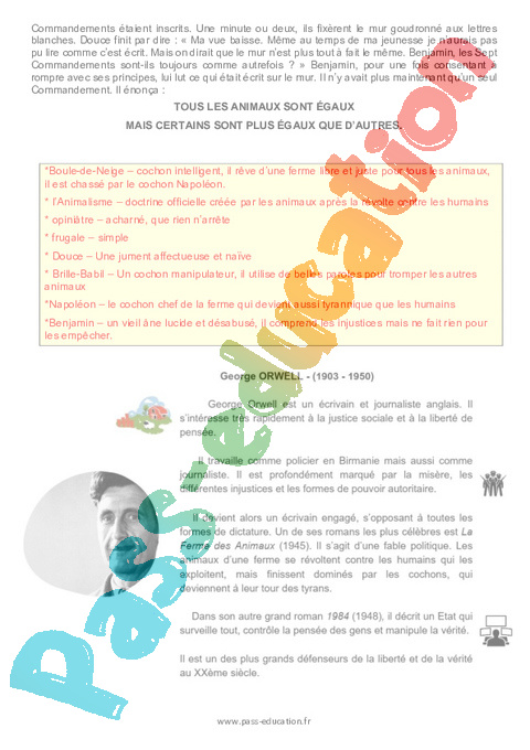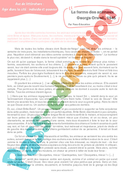 Littérature La ferme des animaux (George Orwell) – 3ème pdf