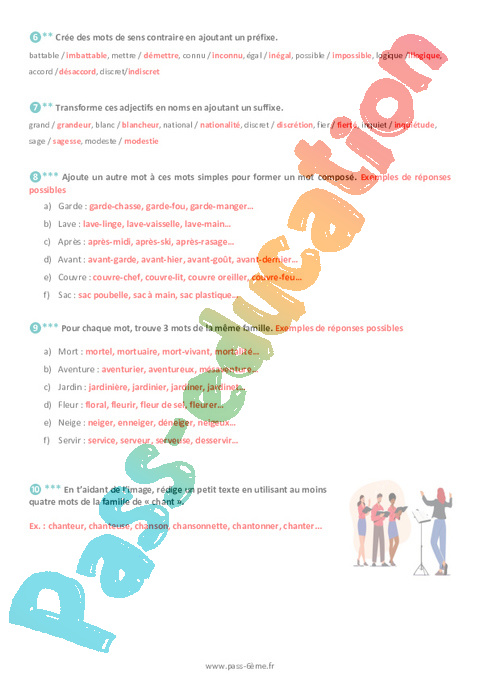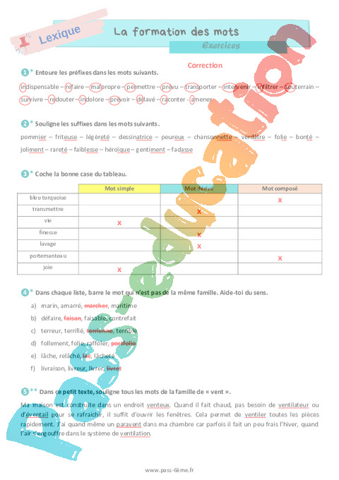 Correction Exercices 6ème La formation des mots famille de mots pdf
