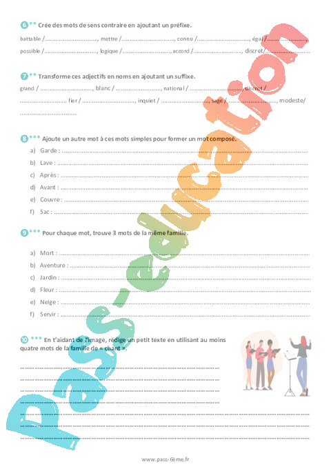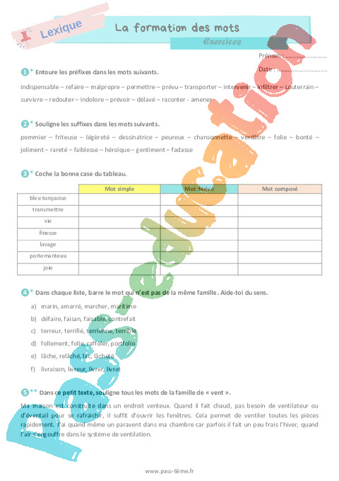 Exercices 6ème La formation des mots famille de mots pdf