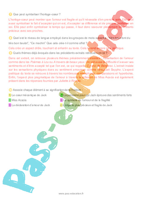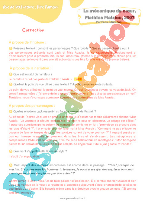 Correction Questionnaire – 4ème La mécanique du cœur (Mathias Malzieu) pdf