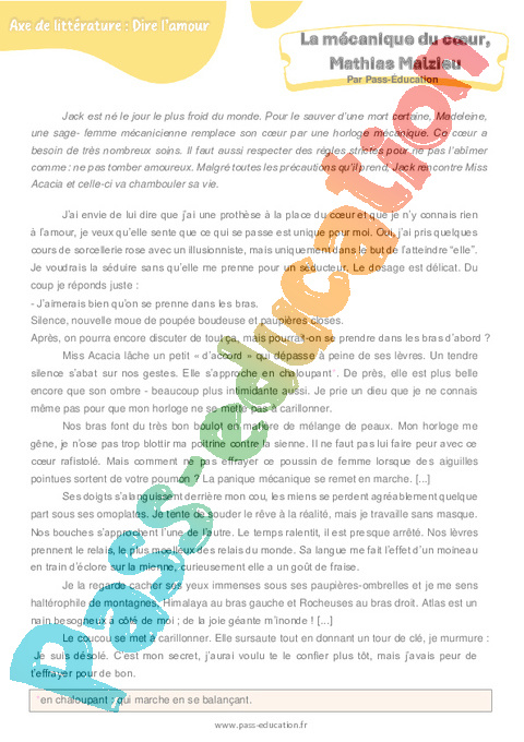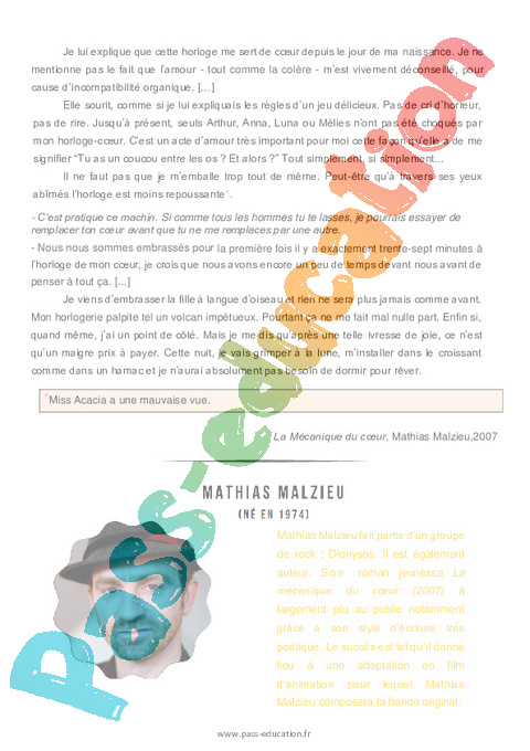 Littérature – 4ème La mécanique du cœur (Mathias Malzieu) rtf