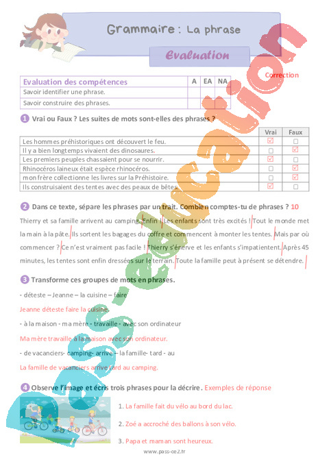 Correction Evaluation La phrase – CE2 pdf