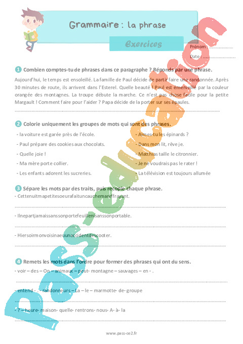 La phrase – Exercices grammaire pour le ce2 pdf
