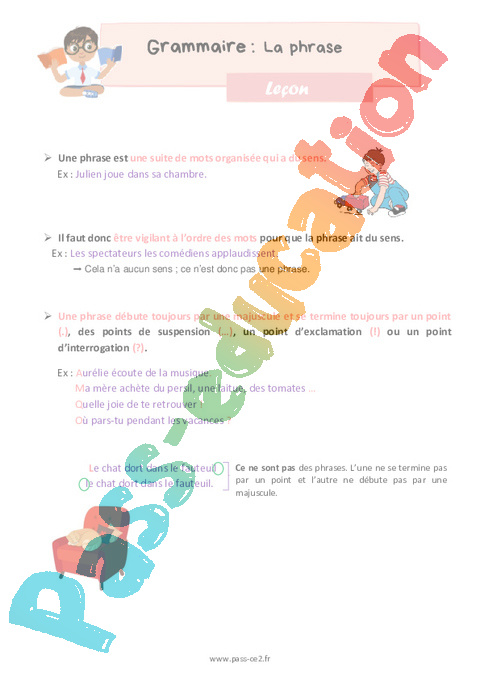Leçon de grammaire pour le ce2 sur la phrase.