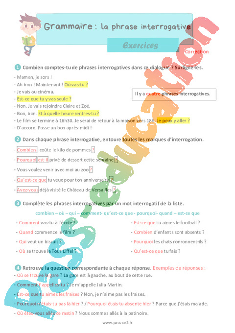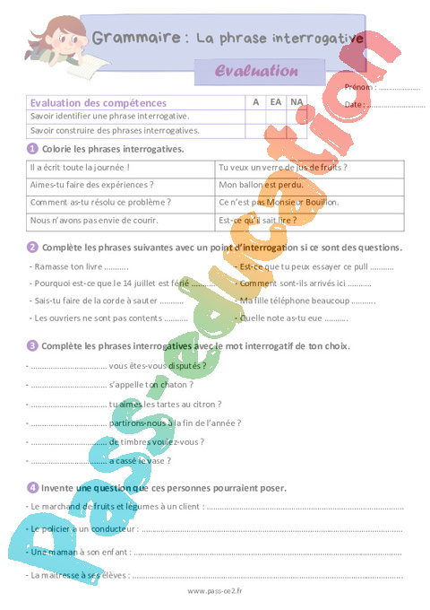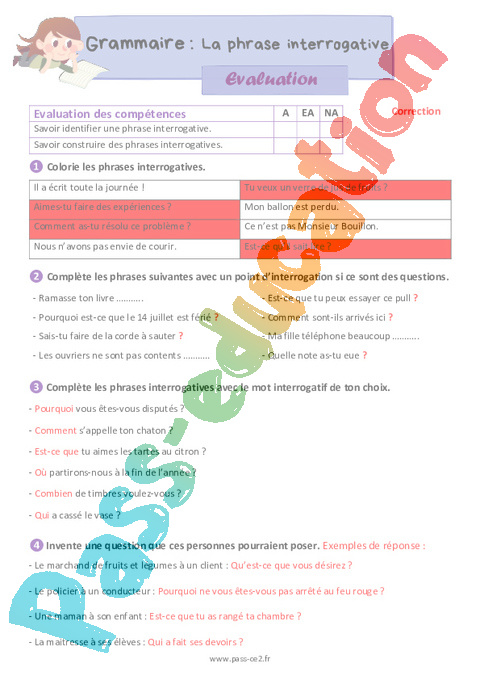 Evaluation Correction Ce2 La phrase interrogative pdf