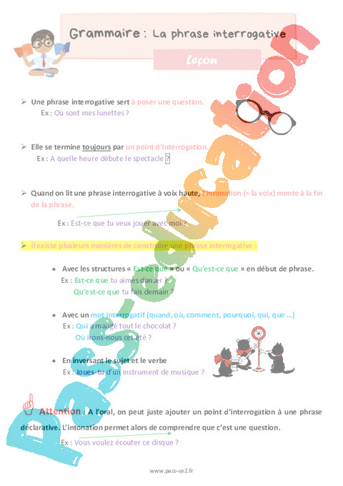 Leçon de grammaire pour le ce2 sur la phrase interrogative.